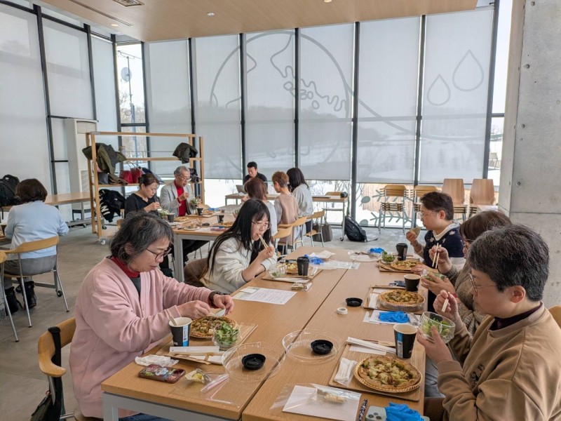 午前の部はクボタアグリフロントカフェさんの『酪農学園コラボピザ』、ミネストローネ、サラダにハーブスパイスを加えて楽しんで頂きました。